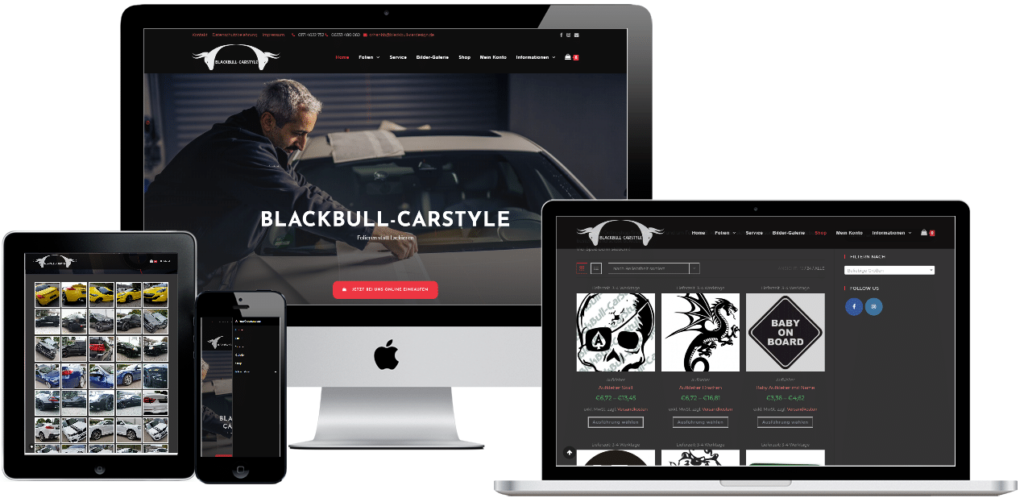Blackbull-Carstyle.de überzeugt durch ein einheitlich schlichtes dunkles Design.